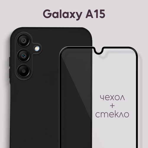 Комплект 2 в 1: Чехол + стекло для Samsung Galaxy A15 / противоударный силиконовый матовый на Самсунг Гэлакси А15