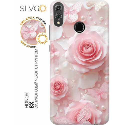 Силиконовый чехол на Honor 8X с принтом Бабочки в розовом саду, trn