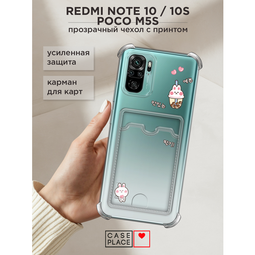 Чехол на Xiaomi Redmi Note 10/10S/Poco M5s (Редми Нот 10/10S/Поко M5s) с картой и принтом Bunny bubble tea