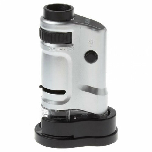 Карманный цифровой 50-500х USB микроскоп со светодиодной подсветкой. Габариты всего 110х35х35 мм! Встроенная подсветка из 8 светодиодов, расположенных возле линзы, позволяет проводить работы при любом уровне внешнего освещения. Характеристики: Увеличение – 50-500.0Х. Фокусное расстояние – 0-200 мм. Встроенная подсветка – 8 LED. Камера – 2 MPix. Интерфейс USB 2.0. Питание – по кабелю USB. Запись изображений и видео – 1600x1200, 640x480 пикселей, 30 кадров в секунду. Поддерживаемые OS – Wndows XP и выше. Габариты – 110х35х35 мм. Материал линзы и корпуса – пластик, подставка – металл. Вес с подставкой – 160 г. Страна-производитель – Китай. Комплектация: – Микроскоп– Подставка– Калибровочная пластина– Диск с драйверами, ПО и руководством пользователя. Незаменимый инструмент для тех, кому нужно разглядеть мелкие детали изображения.