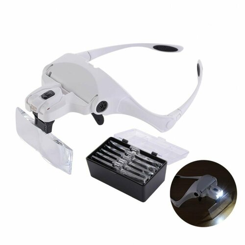 Лупа налобная 1.5/3.0/9.5/11.0x с подсветкой (2 LED)
