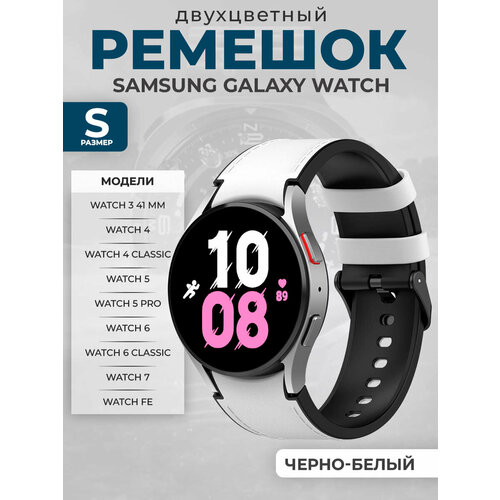 Двухцветный кожаный ремешок для Samsung Galaxy Watch, размер S, черно-белый, черная пряжка