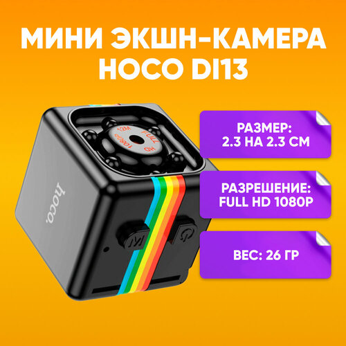 Мини экшн-камера HOCO DI13 Full HD 1080p с креплением / Мини видеокамера для наблюдения / Фото камера / Мини экшн - камера с функцией ночной съемки