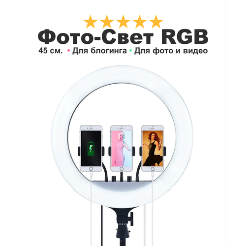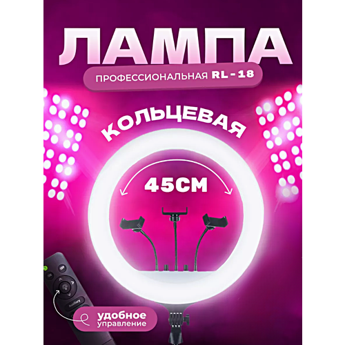 Профессиональная кольцевая LED лампа RL - 18 диаметром 45 см для фотографий, видео, YouTube, TikTok подойдет стилистам и визажистам