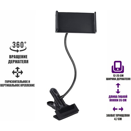 Гибкий кронштейн GD для планшета размером до 25 см на прищепке PR1