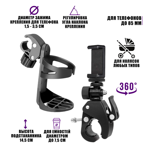 Держатель D2T-K15 с двусторонним креплением телефона и планшета на штатив микрофонную стойку диаметром от 15 мм