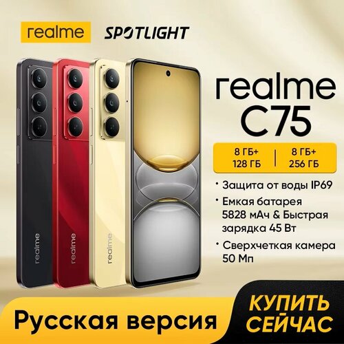 Смартфон realme C75 NFC EAC Аккумулятор 5828 мАч 45 Вт зарядки 6,72 дюйма 90 Гц FHD дисплей IP69 камера 50 Мп