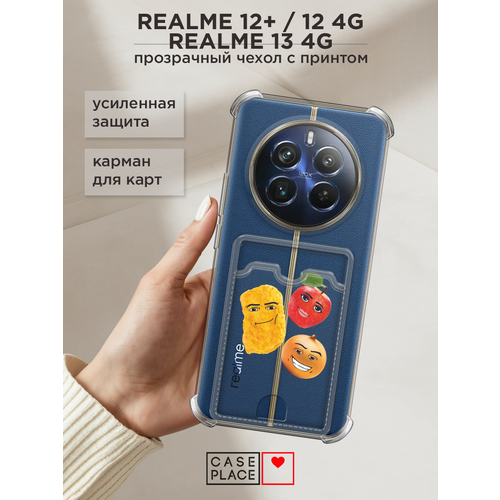 Чехол на Realme 12+/12 4G/13 4G (Реалми 12 Плюс/12 4G/13 4G) с картой и принтом Овощи с лицами из ТикТока