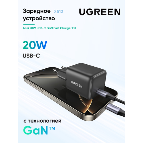 Сетевое зарядное устройство UGREEN X512 (55528) Mini 20W USB-C GaN Fast Charger EU. Цвет: серый