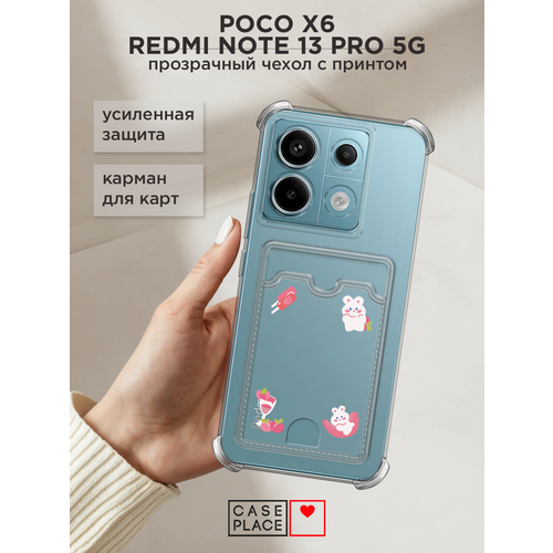 Чехол на Poco X6/Redmi Note 13 Pro 5G (Поко Х6/Сяоми Редми Нот 13 Про 5G) с картой и принтом Милый корейский кролик