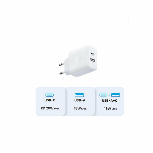 Сетевая зарядка UGREEN X227 (45310) 20W USB-A и USB-C PD белая
