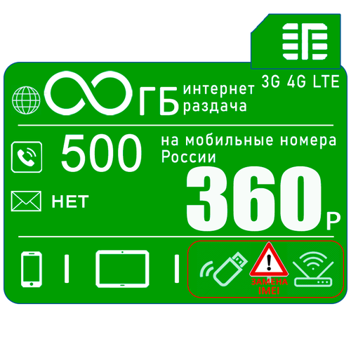 Сим-карта для смартфона с безлимитным интернетом и раздачей по всей России + 500 минут на мобильные по РФ за 360р/мес+ модемы, роутеры с заменой IMEI + раздача + торренты.