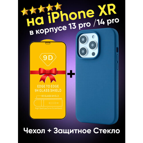 Чехол + защитное стекло на iPhone XR в корпусе 13-14 про / Синий Чехол