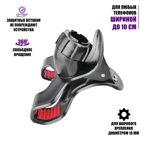 Держатель прищепка для съемки смартфоном на шаровое крепление