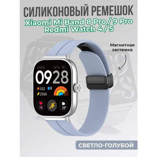 Cиликоновый ремешок для Xiaomi Mi Band 8 Pro/9 Pro и Redmi Watch 4/5, с магнитной застежкой, светло-голубой