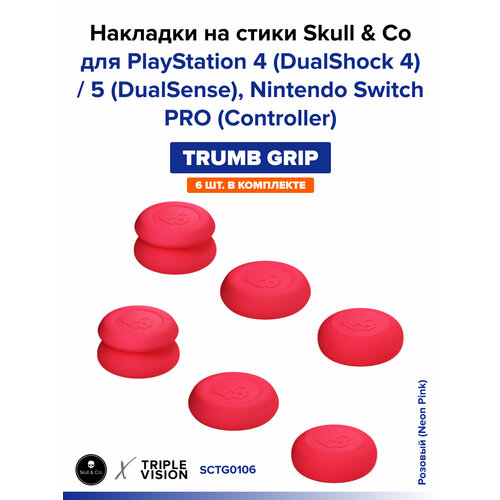 Накладки на стики "Thumb Grip" Skull & Co для PlayStation 4 (DualShock 4) / 5 (DualSense), Nintendo Switch PRO (Controller), 6 штук, Розовый (Neon Pink)
