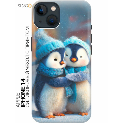 Силиконовый чехол на Apple iPhone 14 с принтом Пингвинья нежность, trn
