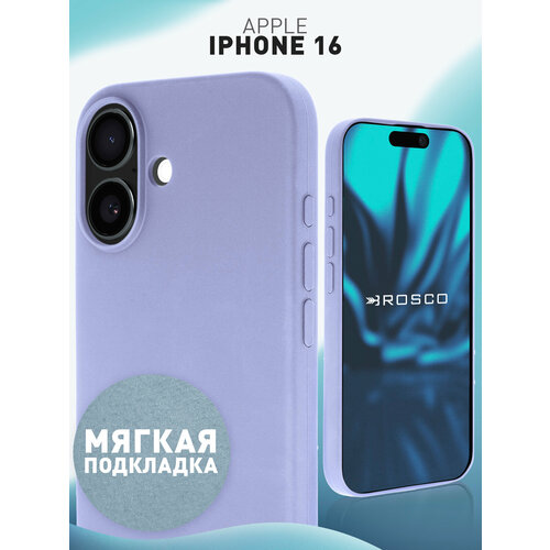 Силиконовый чехол с мягкой подкладкой на Apple iPhone 16 (Айфон 16), бренд Rosco, лавандовый