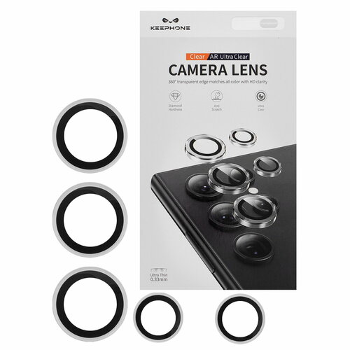 Защитные линзы для камеры Galaxy S25 Ultra KEEPHONE — Закаленное стекло 9H c покрытием AR из алюминиевого сплава-Серебро