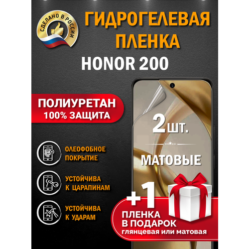 Защитная гидрогелевая пленка на экран Honor 200, матовая, 2 шт.