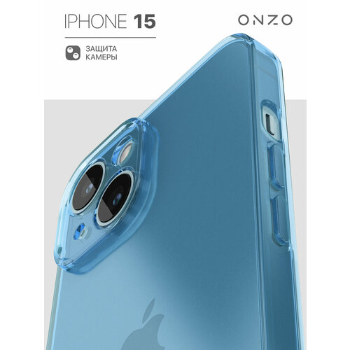 Чехол для iPhone 15 / Айфон 15 защитный бампер тонкий, голубой прозрачный