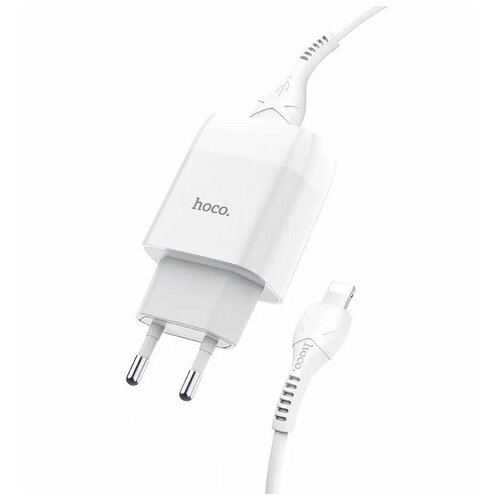 Зарядное устройство сетевое HOCO C72A 1USB 2.1A с кабелем Lightning (Белый)