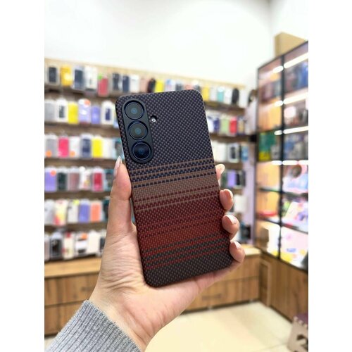 Чехол для Samsung S25 Карбоновый с защитой камеры MagSafe Sunset / Чехол из кевлара для Самсунг С25