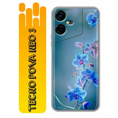 Чехол для Tecno Pova Neo 3 с принтом Голубые цветы (Техно Пова Нео 3)