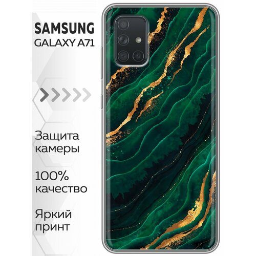 Дизайнерский силиконовый чехол для Самсунг А71 / Samsung Galaxy A71 Мрамор зеленое золото
