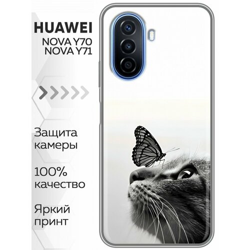 Дизайнерский силиконовый чехол для Хуавей Нова У70 / Huawei Nova Y70 Кот и бабочка