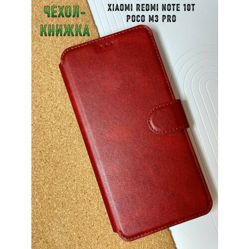 Чехол книжка для Xiaomi Redmi Note 10T / Poco M3 Pro кожаный с магнитной застежкой / Сяоми Редми Ноут 10Т / Поко М3 Про с хлястиком , с функцией подставки
