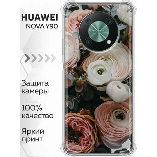 Дизайнерский силиконовый с усиленными углами чехол для Хуавей Нова У90 / Huawei Nova Y90 Цветы принт