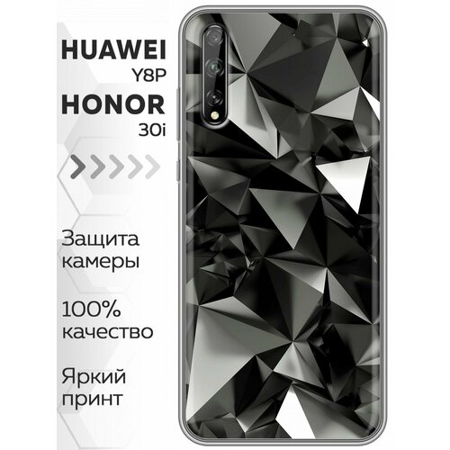Чехол для Huawei Y8P, Honor 30i с принтом черные кристаллы (Хуавей У8Р Хонор 30)