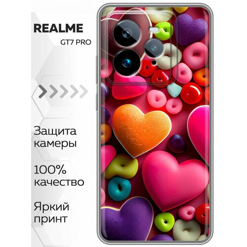 Чехол для Realme GT7 Pro с принтом Сердечки розовые (Реалми ГТ7 про)