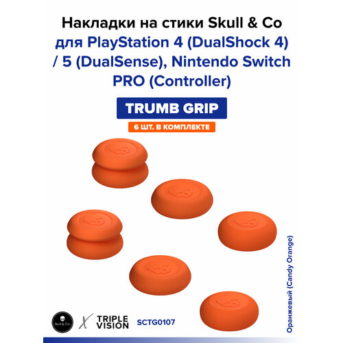 Накладки на стики "Thumb Grip" Skull & Co для PlayStation 4 (DualShock 4) / 5 (DualSense), Nintendo Switch PRO (Controller), 6 штук, Оранжевый (Candy Orange)