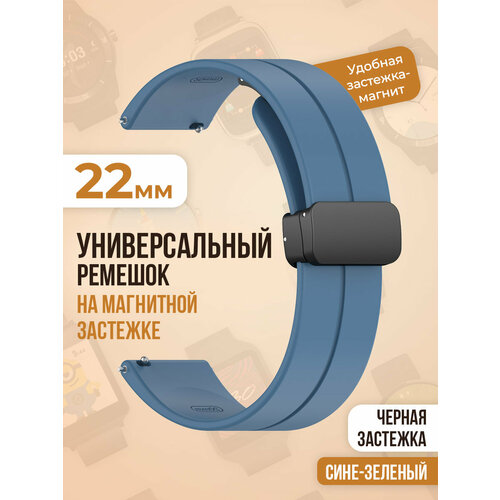 Универсальный силиконовый ремешок с магнитом 22 мм, черная застежка, сине-зеленый
