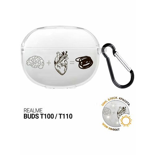 Чехол на Realme Buds T100 / T110 с принтом "Мозг плюс сердце" прозрачный