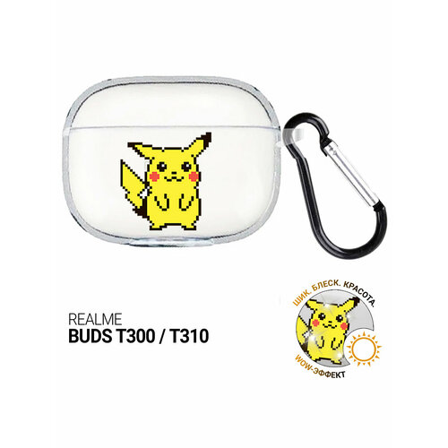 Чехол на Realme Buds T300 / T310 с принтом "Pixel Pikachu" прозрачный
