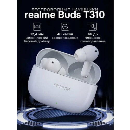 Наушники realme Buds T310, Bluetooth 5.4, ANC, влагозащита, белые