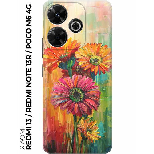 Силиконовый чехол на Xiaomi Redmi 13 / Redmi Note 13R / Poco M6 4g с принтом "Герберы гуашью"