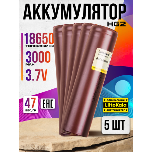 Аккумулятор 18650 HG2 с плоским контактом силовой для шуруповёртов, пылесосов 5 шт.