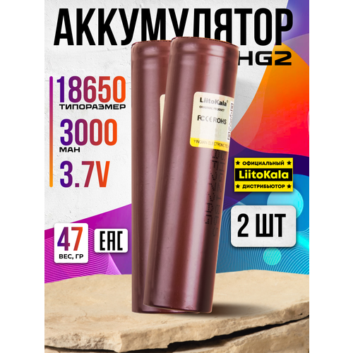 Аккумулятор 18650 HG2 с плоским контактом силовой для шуруповёртов, пылесосов 2 шт.