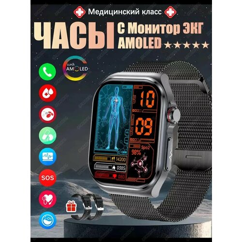 Умные часы мужские и женщины, модель 2025, наручные круглые с сенсорным экраном 47 мм/ Smart Watch,3 ремня