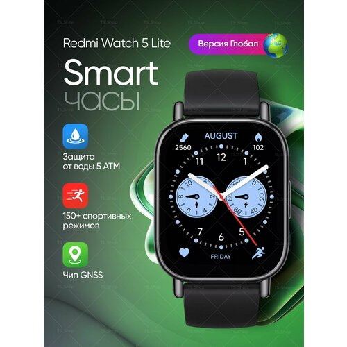 Умные смарт часы Redmi Watch 5 Lite c уведомлениями и звонками, черные