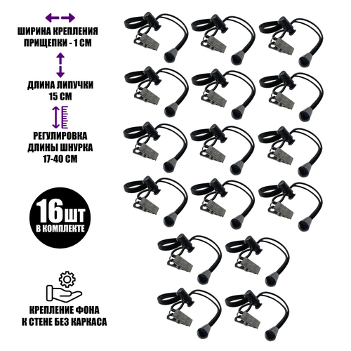 Крепление прищепка на резинке с фиксатором для фотофона, металл, 16 шт