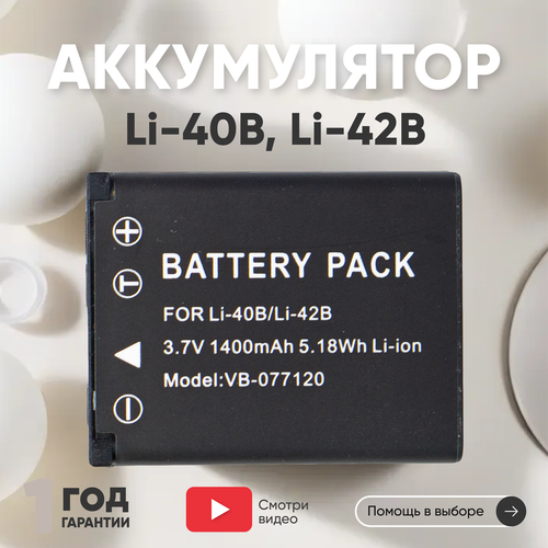 Аккумуляторная батарея Li-40B для фотоаппарата Li-40B, Li-42B 3.7В, 1400мАч, Li-ion
