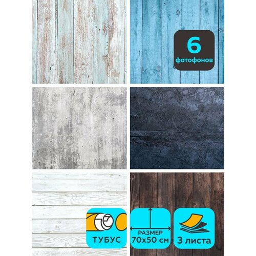 Комплект из 3-х двусторонних фотофонов mainprint Фотофон для фото / Фотофон для предметной съемки 3 листа "дерево, бетон, 3d"