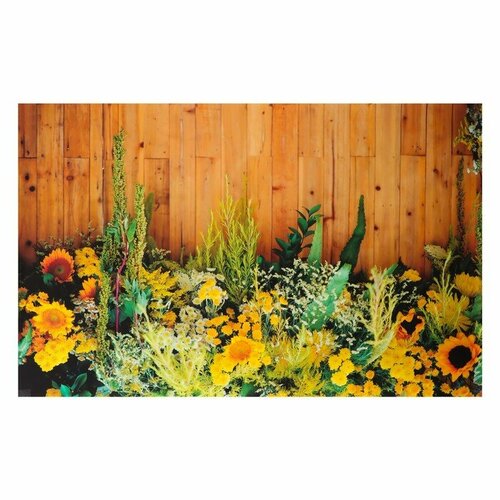 Фотофон винил "Жёлтые цветы на дощатой стене" 80х125 см