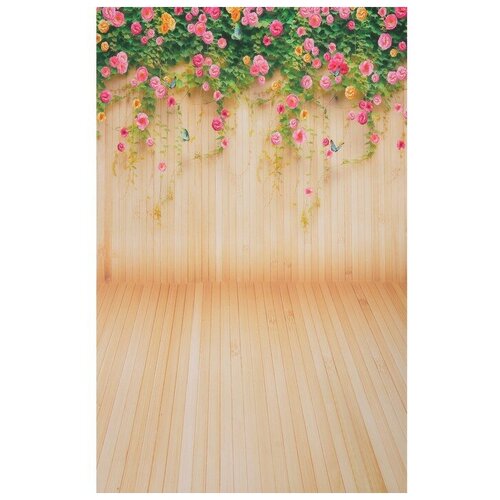 Фотофон винил "Цветение и доски" стена+пол 125х80 см