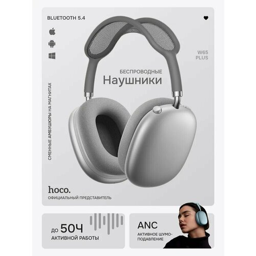 Беспроводная гарнитура W65Plus, с шумоподавлением, складная, Bluetooth 5.3 Серебро
